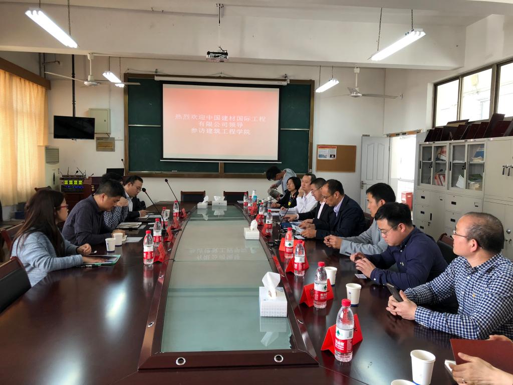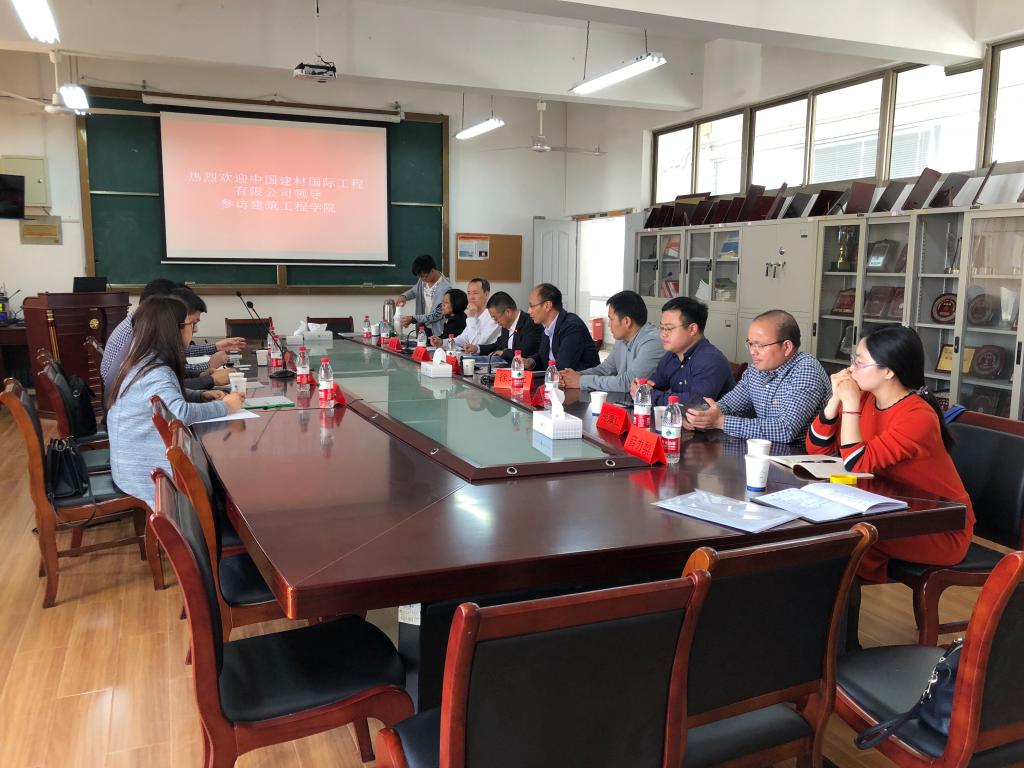 3月30日下午,中国建材国际工程集团有限公司吕宏炜副总裁一行四人参访黄色网 。四位客人在参观建筑工程实验中心后,在生化学院院长、中澳研究院刘小明副院长主持下,与黄色网 孙德发副院长等八位老师在建工楼319会议室进行了会谈,在会上,中国建材国际工程集团有限公司、黄色网 、中澳先进材料与制造研究所的相关同志作了工作介绍,双方参会人员进行了深入交流,并对共同感兴趣的项目进行了对接洽谈。