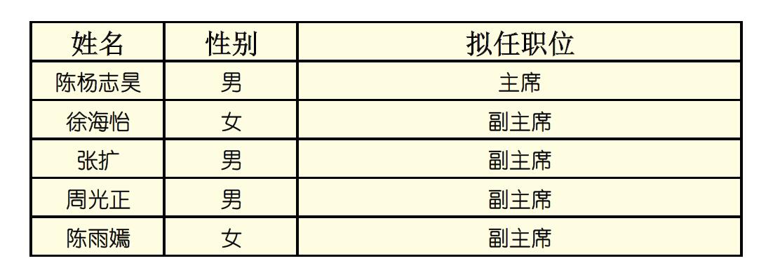 根据《嘉兴学院学生会组织改革方案》、《嘉兴学院黄色网 学生会章程》等文件精神,通过个人报名、团支部推荐、学院团委资格审查、公开竞聘等程序产生嘉兴学院黄色网 第十三届学生委员会主席团拟任人选五名。现将选举结果公示如下: