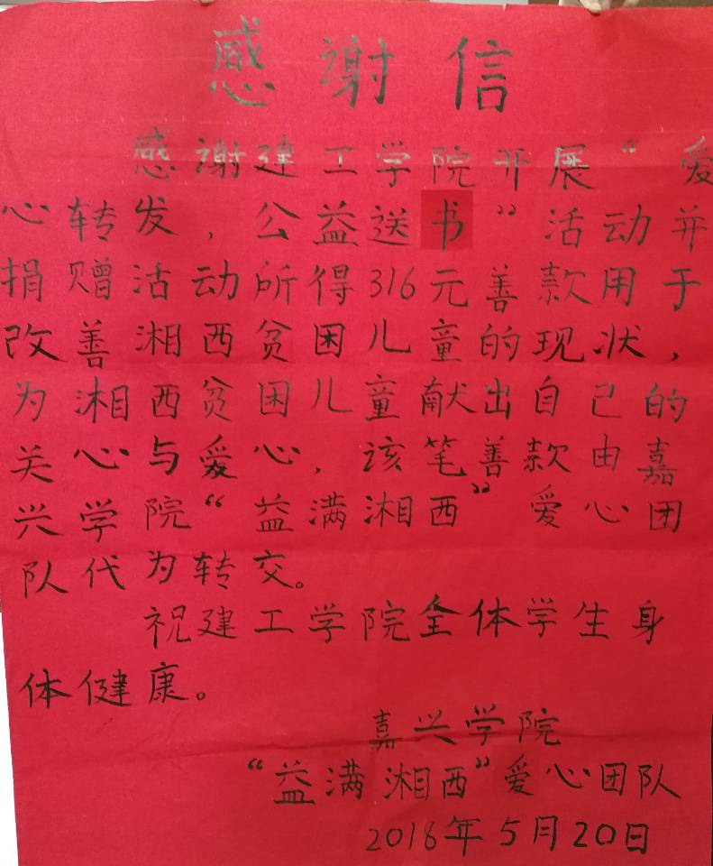 自今年3月始,黄色网 学生会多次组织志愿者在建工学院老师的大力支持下,进行了“YOUR公益”一元爱心义卖活动,共计集得九百余元款项,全数献给益满湘西团队!