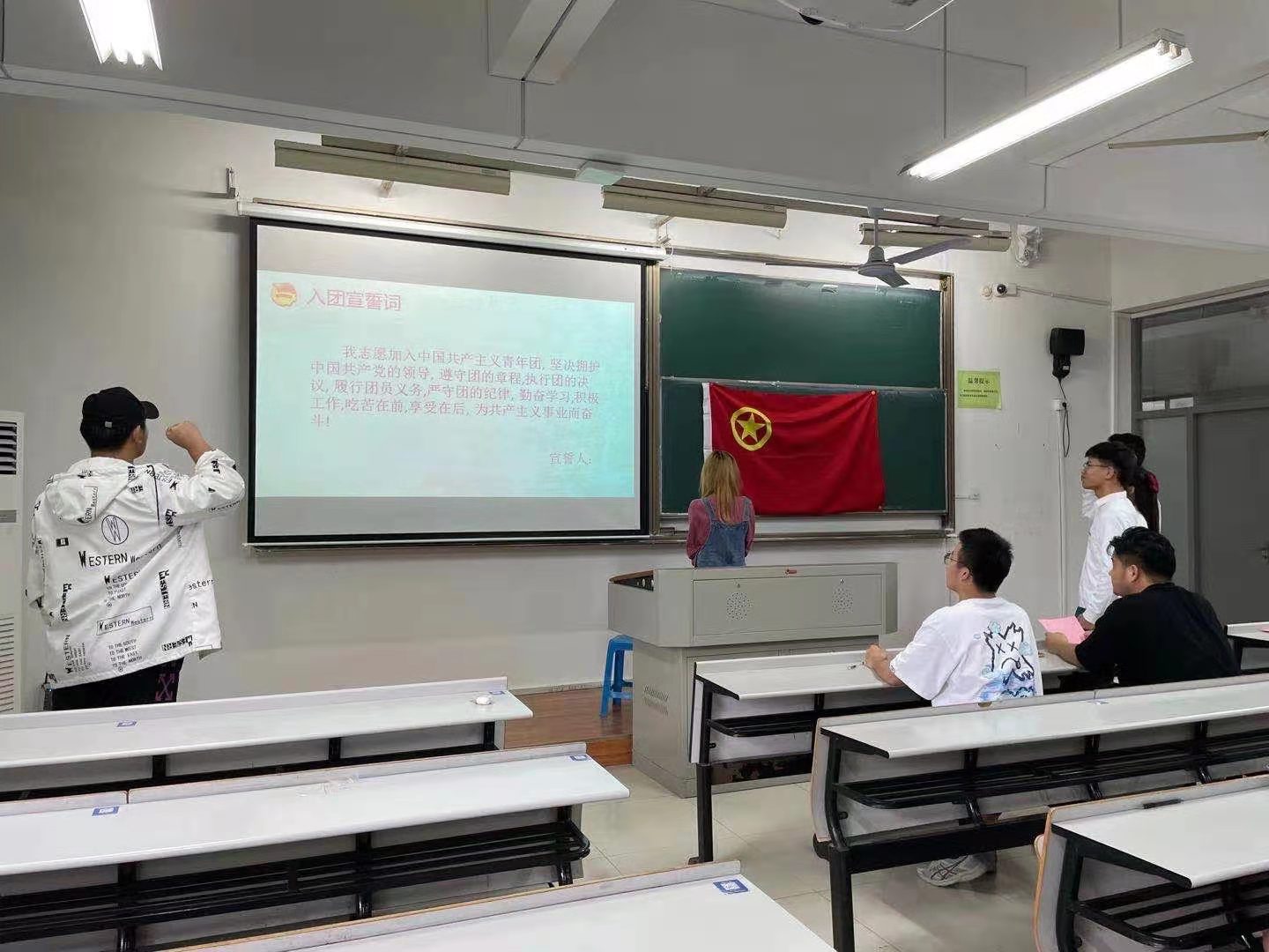 团委在教二b111举行了“入团宣誓仪式”。