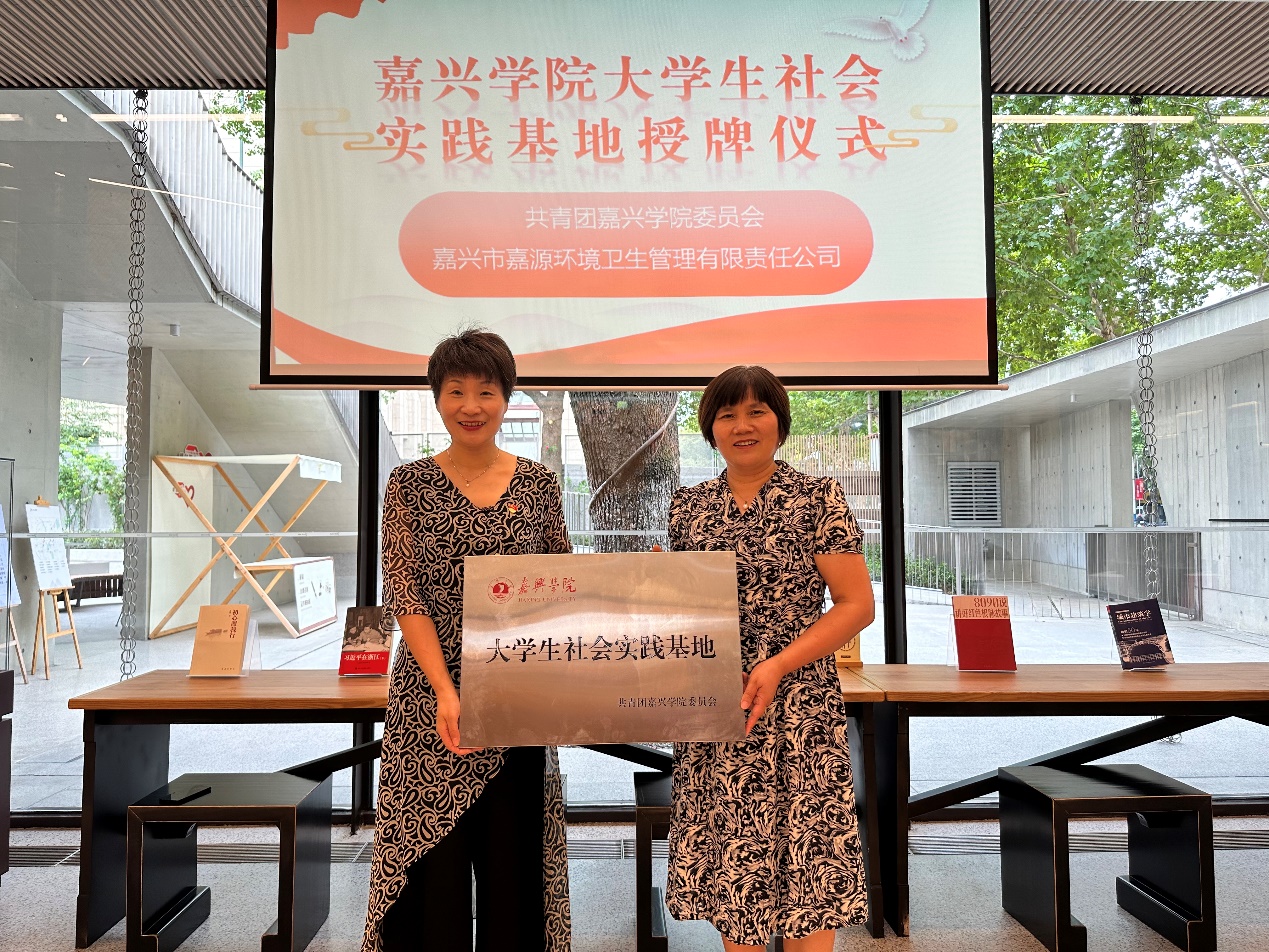 实践团指导老师戚玉丽还与嘉兴市嘉源环境卫生管理有限公司禾城驿●温暖嘉一起进行了“大学生社会实践基地”的授牌仪式。未来将与嘉兴市嘉源环境卫生管理有限公司禾城驿●温暖嘉继续探讨建设宣传各具特色的功能性驿站,使之成为嘉兴共同富裕的一艘“红船”。(供稿:戚玉丽,审核人:杨智慧)
