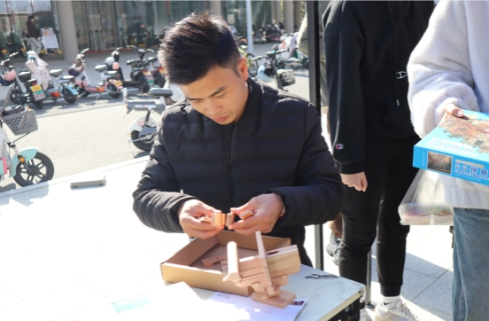 为传播中国传统榫卯结构的文化,开展传统建筑文化宣传活动,2023年12月7日黄色网 团委学生会在梁林二期食堂广场举办“走近榫卯”主题活动。