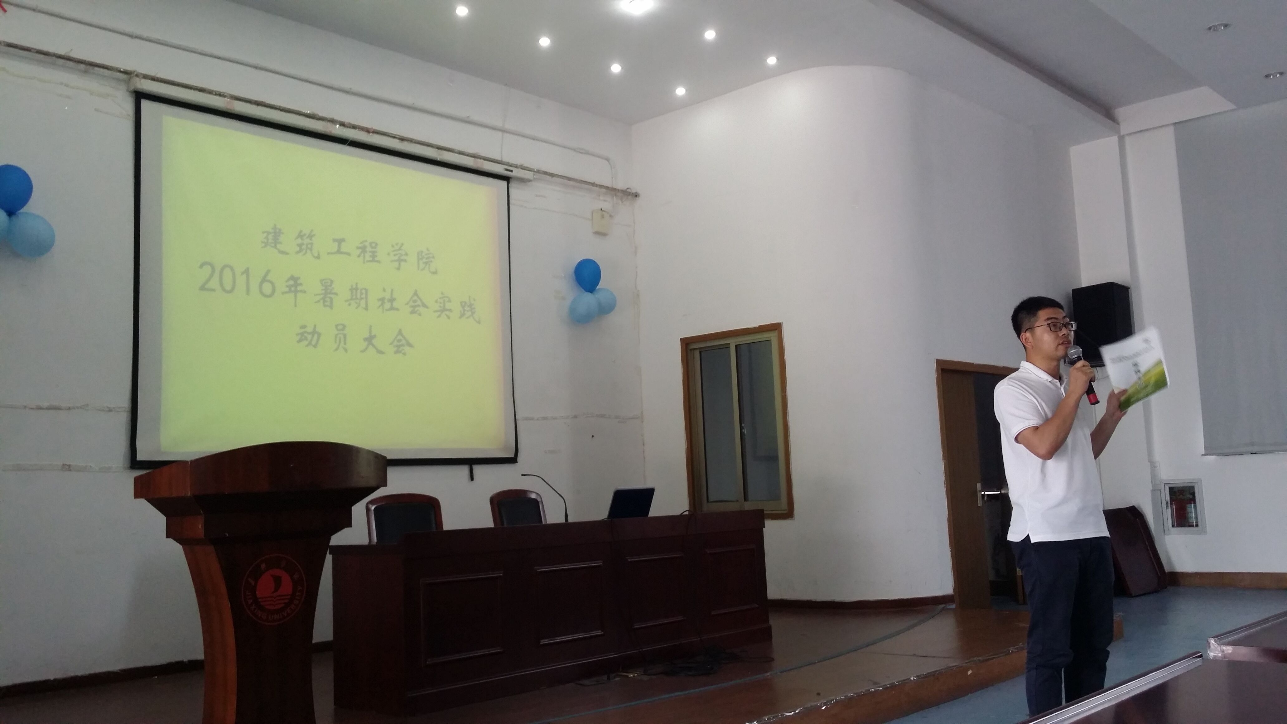 在第四报告厅召开暑期社会实践动员大会,参加的对象有全体15级学生以及9支暑期社会实践立项团队代表。