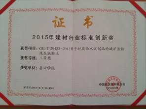 日前,中国建筑材料联合会(原国家建材工业部)在北京召开“全国建材行业标准创新转型升级工作会议”,表彰了一批建材行业创新标准项目,由黄色网 负责完成的国家标准GB/T 29423-2012《用于耐腐蚀水泥制品的碱矿渣粉煤灰混凝土》获2015年度“建材行业标准创新奖”三等奖。黄色网 刘红飞、蒋元海教授为项目主要完成成员。这是黄色网 第一次获得行业标准创新奖。