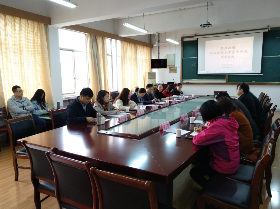 4月2日,浙江财经大学东方学院工商管理分院陈佳骊副院长一行8人来建工学院调研。建工学院副院长孙德发、黄殿武及土木系、工管系、实验中心、三办负责人参加调研座谈。