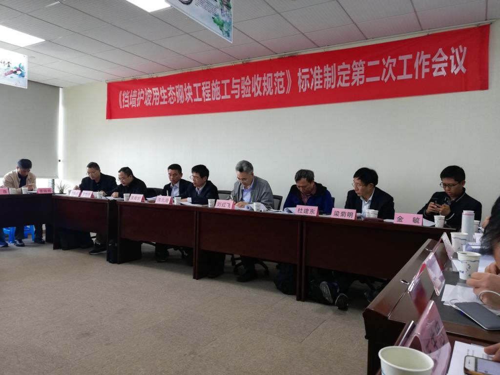 2019年4月27日,受中国工程建设标准化协会建筑与市政工程产品应用分会委托,嘉兴学院在浙江省嘉兴市组织召开了团体标准《挡墙护坡用生态砌块工程施工与验收规范》第二次工作会议,会议由浙江荣林环境股份有限公司承办,共有来自全国的高等学校、科研设计、生态砌块生产、施工、检验机构等部门的22个单位40名代表参加了会议。