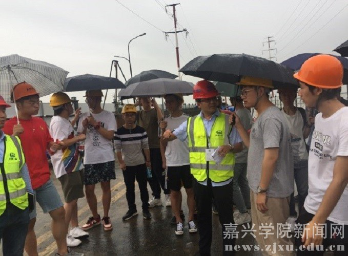 近90名工程管理专业大一新生在工程管理系主任王恩茂、副主任宋宇名等老师的带领下,赴梁林校区扩建工程及南湖湖滨区域改造项目、嘉兴市区快速路环线等标志性工程进行现场教学。