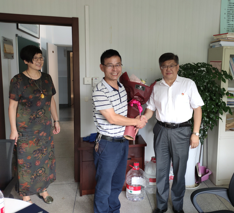 9月10日上午,校党委副书记严从荃代表学校来院进行教师节慰问,为黄色网 荣获嘉兴学院第五届陈省身教师成就奖的蒋元海教授送上节日礼物。院长马嵘、党委书记费锦红陪同慰问。