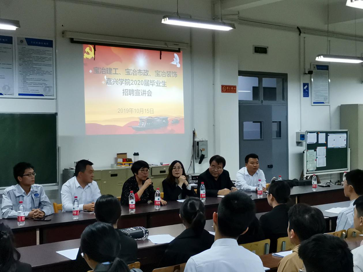 宣讲会后,三家分公司主要领导在建工实验中心203室对应聘学生进行了面试。最终,现场签约15名学生,分别来自建工、南湖和机电三个分院。同时,宝冶公司承诺将在研究生招考后,在嘉兴学院开展第二次招聘活动。