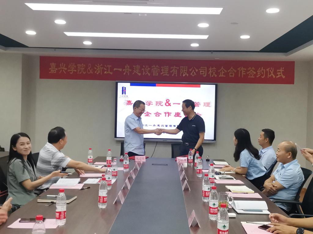 会上,殳耀忠总经理和王恩茂院长代表双方签订了校企合作协议;杨培强副校长向浙江一舟建设管理有限公司颁授产学研基地牌匾;殳耀忠总经理和姚民乐书记代表双方签订了捐赠协议,浙江一舟建设管理有限公司向嘉兴学院教育发展基金会捐赠叁拾万元用于学校的发展建设和人才培养。