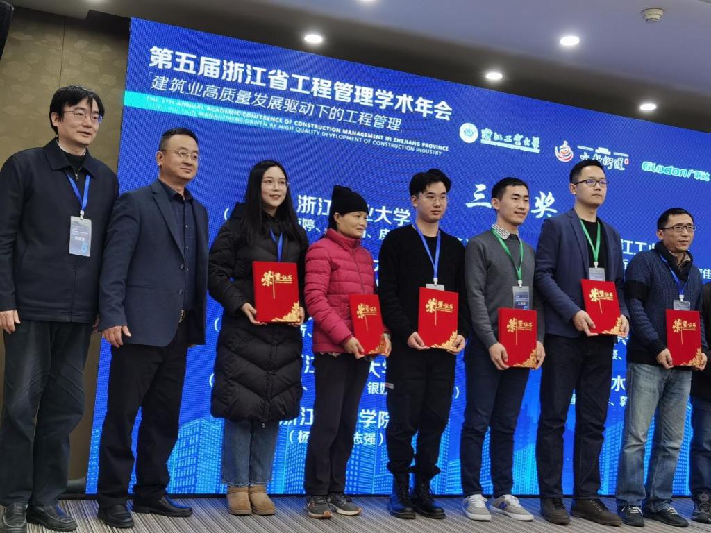 同时,本次大会还举行了第四届浙江省大学生智能建造与管理创新竞赛颁奖典礼。工程管理系庄天文老师带领团队获得了三等奖的好成绩。