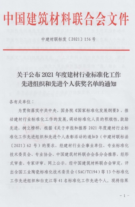 日前,中国建筑材料联合会公布了2021年度建材行业标准化先进组织和先进个人获奖名单,我校黄色网