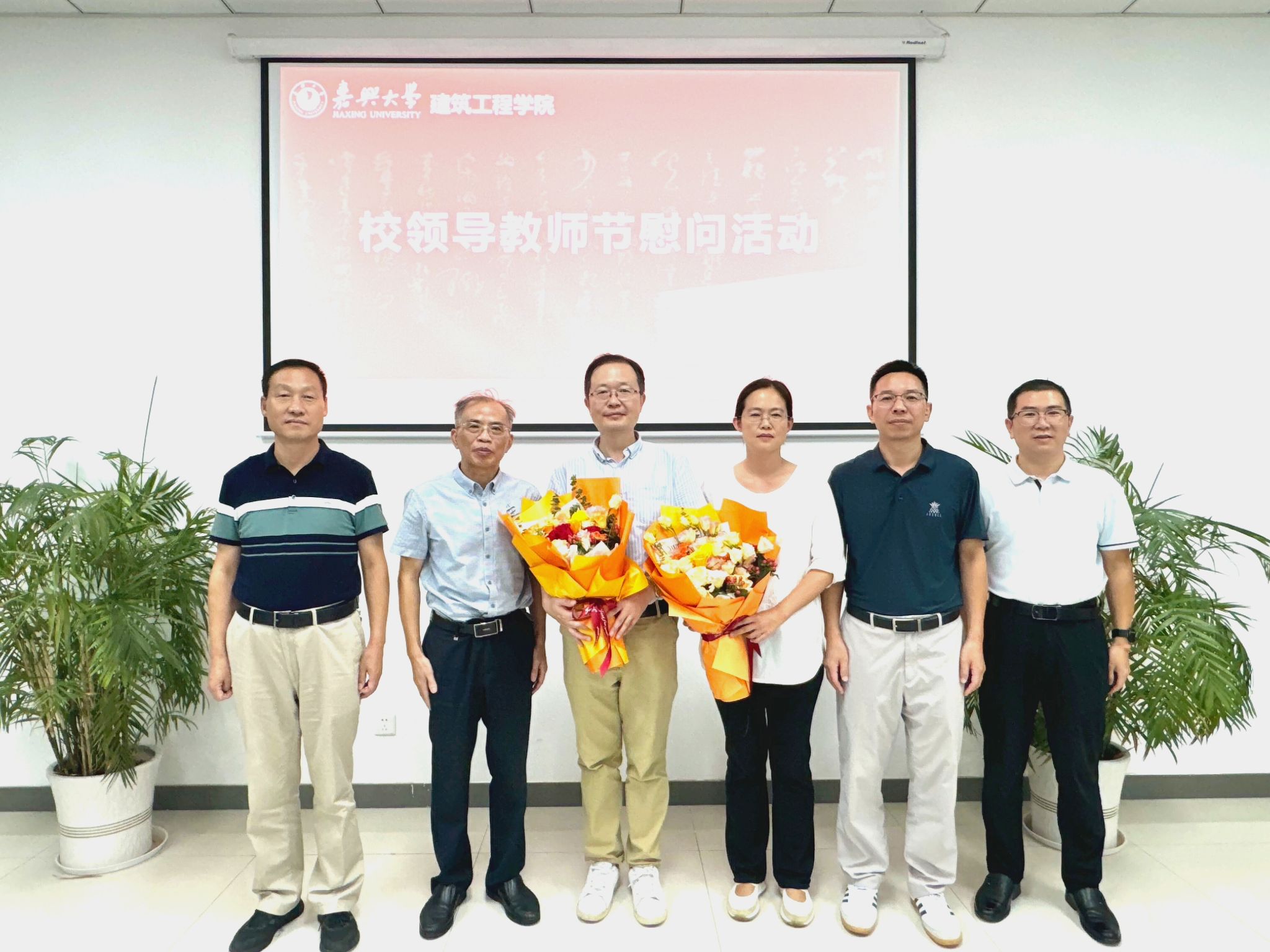 慰问教师,向宋宇名和胡亚楠两位教师代表送上了鲜花,向两位教师代表以及全院教师致以节日的问候和诚挚的祝福,高度赞扬了教师们为培养高素质人才、推动学校发展所做出的重要贡献。