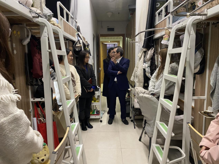 走访过程中,周宏伟副校长对寝室环境细致查看,与同学们亲切交谈,了解大家学习和生活情况,围绕学业规划,给与针对性的学习指导,鼓励大家要夯实专业基础,珍惜大学时光,勇于挑战自我。同时,他为同学们介绍了我校出国留学项目,鼓励大家条件允许的情况下,提前做好出国准备,积极参加短期出国游学项目,拓宽国际视野。
