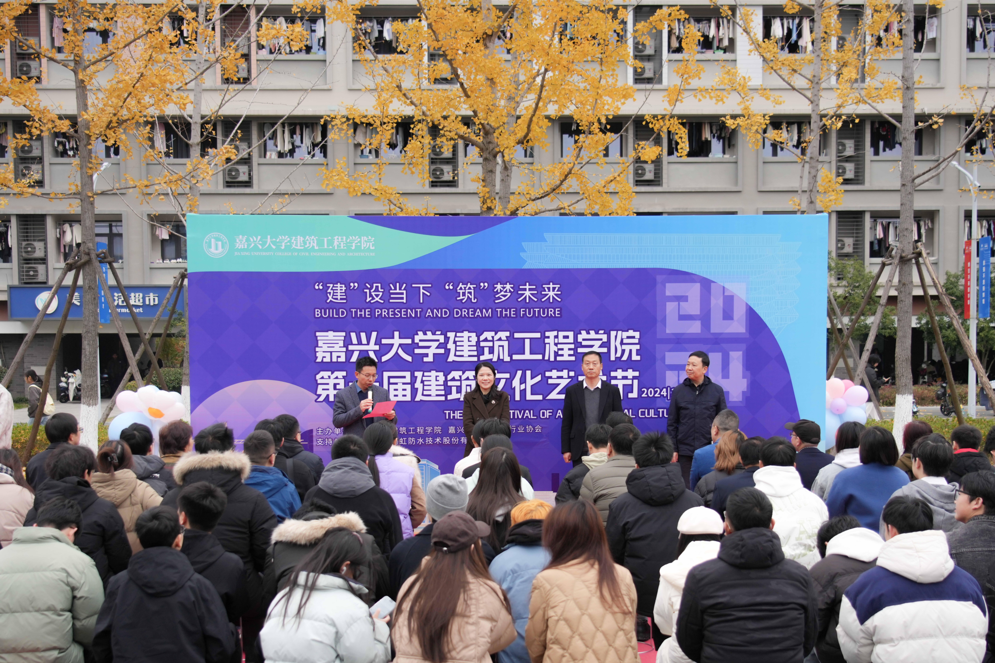 第一届建筑文化艺术节开幕仪式。校党委副书记陈立力出席大会并致辞。嘉兴市勘察设计行业协会会长徐文辉,协会各常务理事单位代表、各大设计院专家、设计师以及黄色网