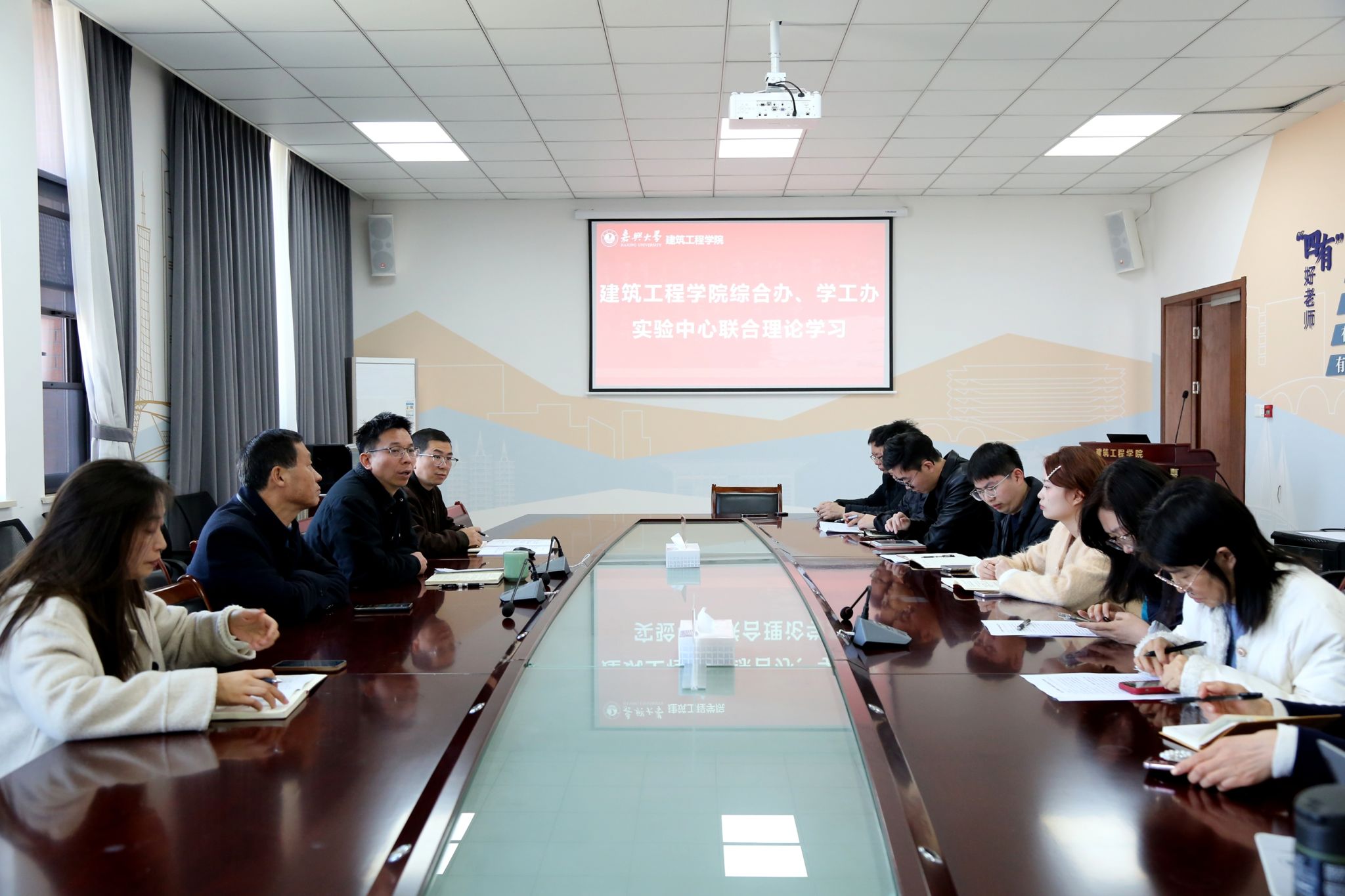 2025年2月28日,建筑工程学院开展“两办一中心”理论联学活动。党委书记童勇军、院长王恩茂、党委副书记杨智慧到会指导,学院综合办、学工办、实验中心全体教职工参加理论学习会。