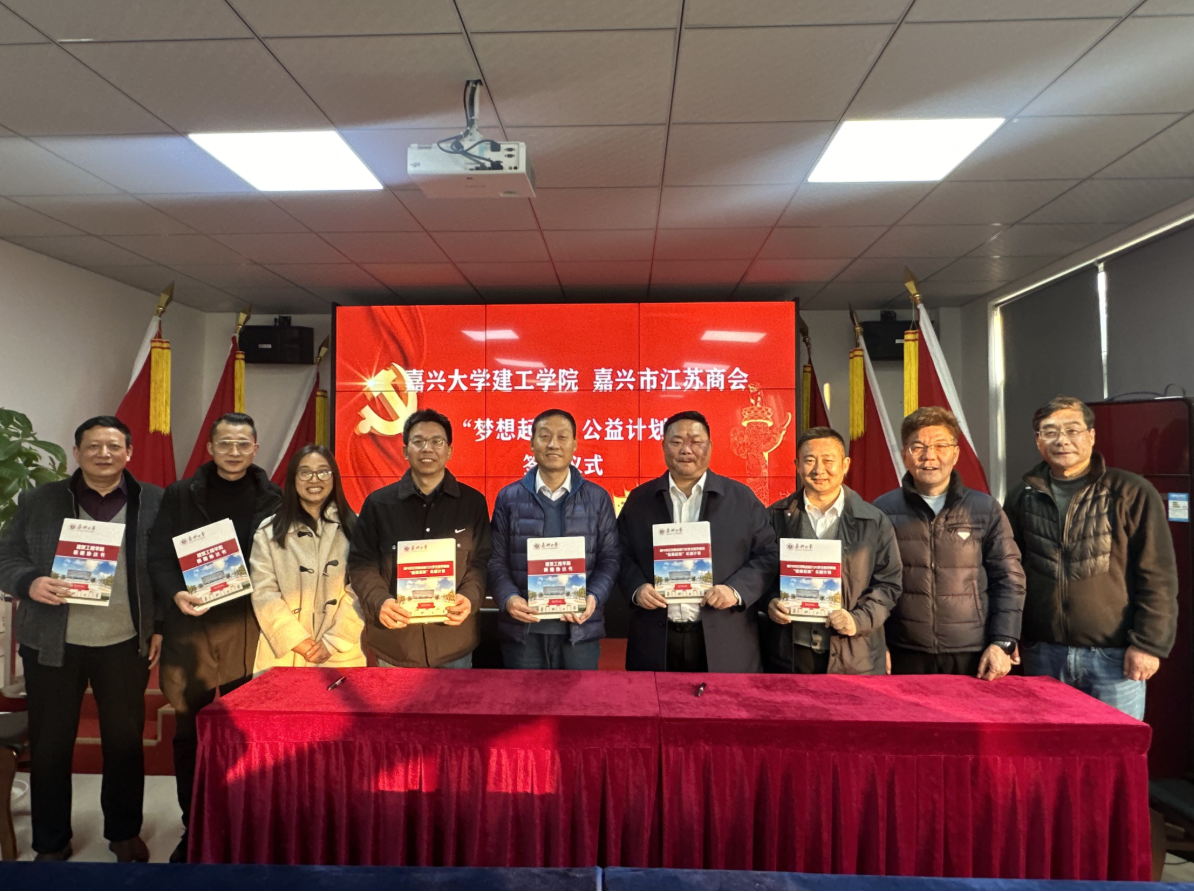 开展"梦想起航"公益计划爱心助学结对活动。嘉兴市江苏商会会长颜士华,商会党支部书记严志国,执行会长蔡勤生,常务副会长徐乃中、蔡多谋、程新华、谢文清、于广波,商会顾问施卫华,秘书长邱步国,秘书处梅叶娟,爱心企业负责人代表和建筑工程学院院长王恩茂、党委书记童勇军、副书记杨智慧以及学院首批10名受助学生等出席本次活动。活动由童勇军主持。