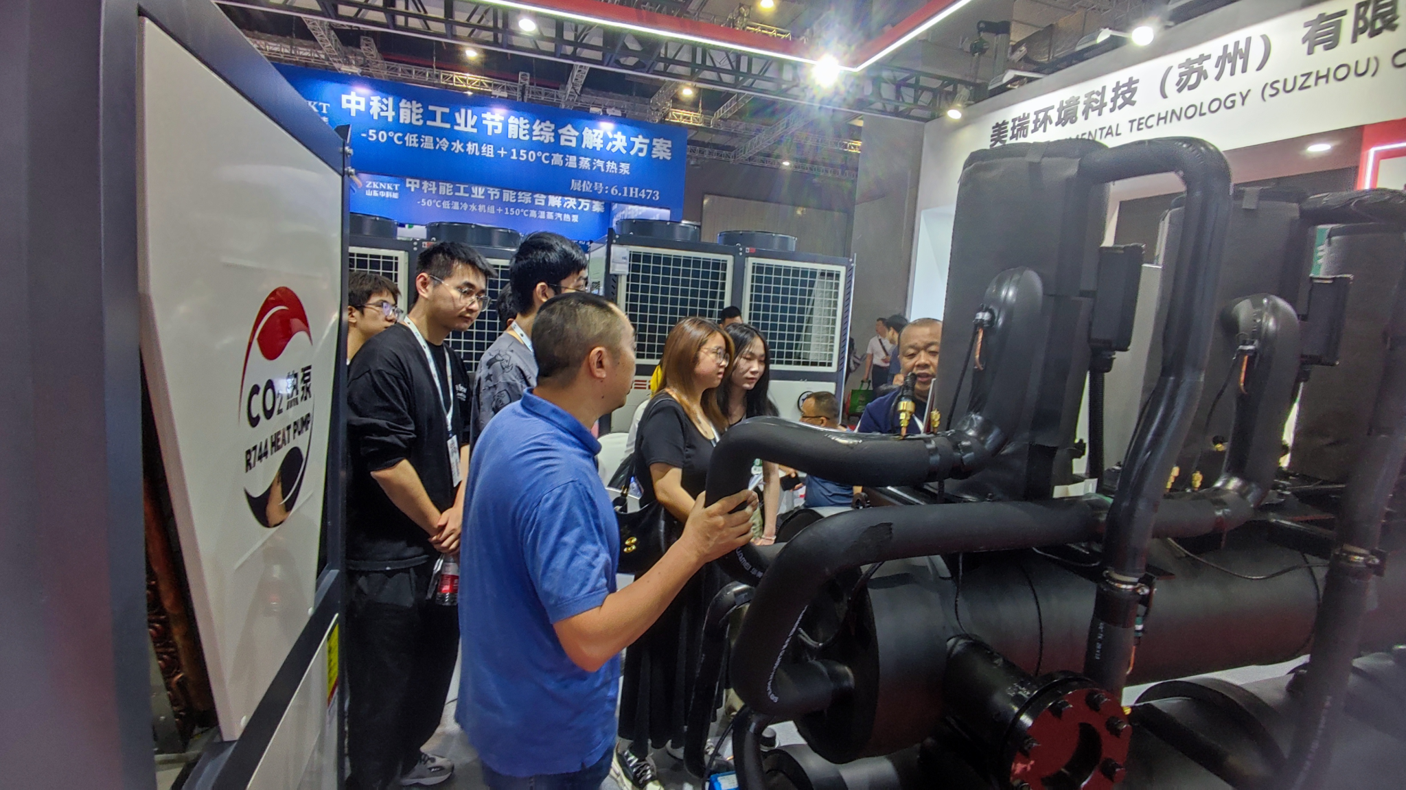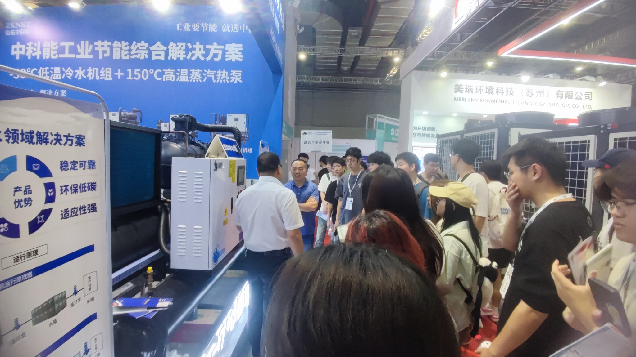 在展览现场,师生们参观了50余家企业的创新产品,包括高温热泵、CO₂冷媒机组等尖端设备。建环2023级学生王袁菲表示:"亲手接触到热泵设备实物,让我们对课本中的热力学原理有了更直观的理解"。在同期举办的"2025工业节能减碳论坛"上,师生们就热泵技术在食品烘干、纺织印染等场景的碳中和应用,与厂商技术代表进行了深入交流探讨。