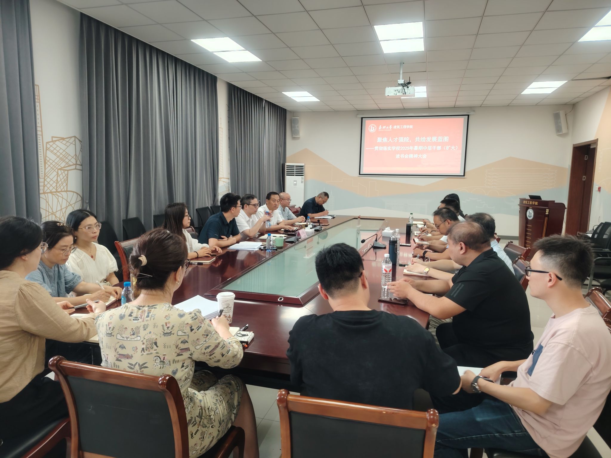 童勇军对学校2025年暑期中层干部(扩大)读书会精神做了全面传达。王恩茂院长结合校党委书记沈希、副校长张琦在中层干部读书会上的讲话精神,围绕对学院人才工作的设想、规划,存在的短板和下一步工作思路及举措做了专题报告。熊厚仁结合於建明副校长和王立玮副校长的两个专题报告对人才在学院学科、科研和社会服务方面发挥的重要作用进行了深入分析。陈华副院长结合周宏伟副校长的专题报告,就学院教学奖项申报、国际化教育方面工作进行了剖析,提出了下一步努力方向。杨智慧副书记就加强辅导员和班主任队伍建设提出了举措和思路。