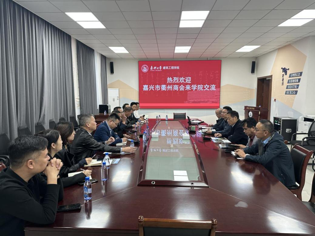王恩茂院长对嘉兴市衢州商会一行的到来表示热烈欢迎,并从学校历史发展沿革及学院学科专业建设、师资队伍实力、科研平台布局、人才培养成果等方面作了详细介绍。他特别强调,学院始终以服务地方产业发展为根本导向,持续推动教育教学与行业实践深度融合,致力于为区域建筑行业培养实用型、复合型人才。