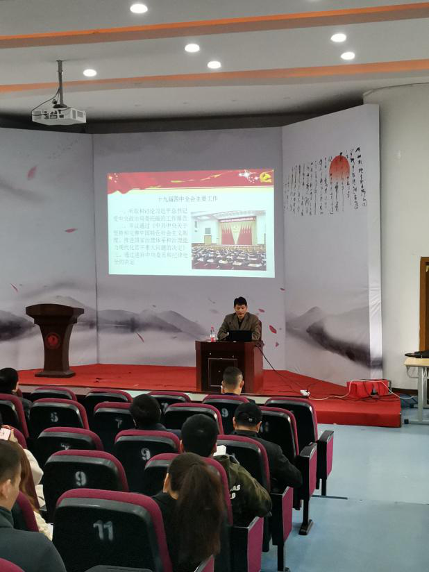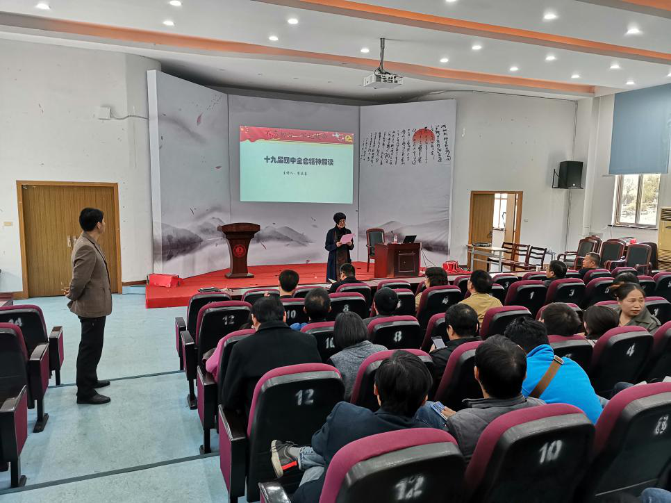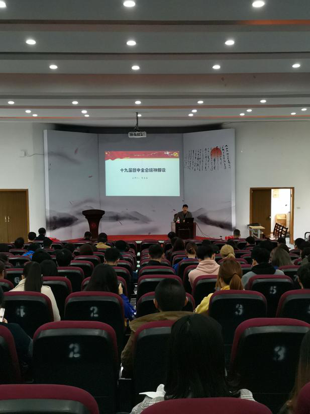2019年11月21日下午,建工学院邀请马克思主义学院李庆喜博士来院作十九届四中全会精神宣讲。建工学院党政领导班子、全体教职工和学生党员参加会议。