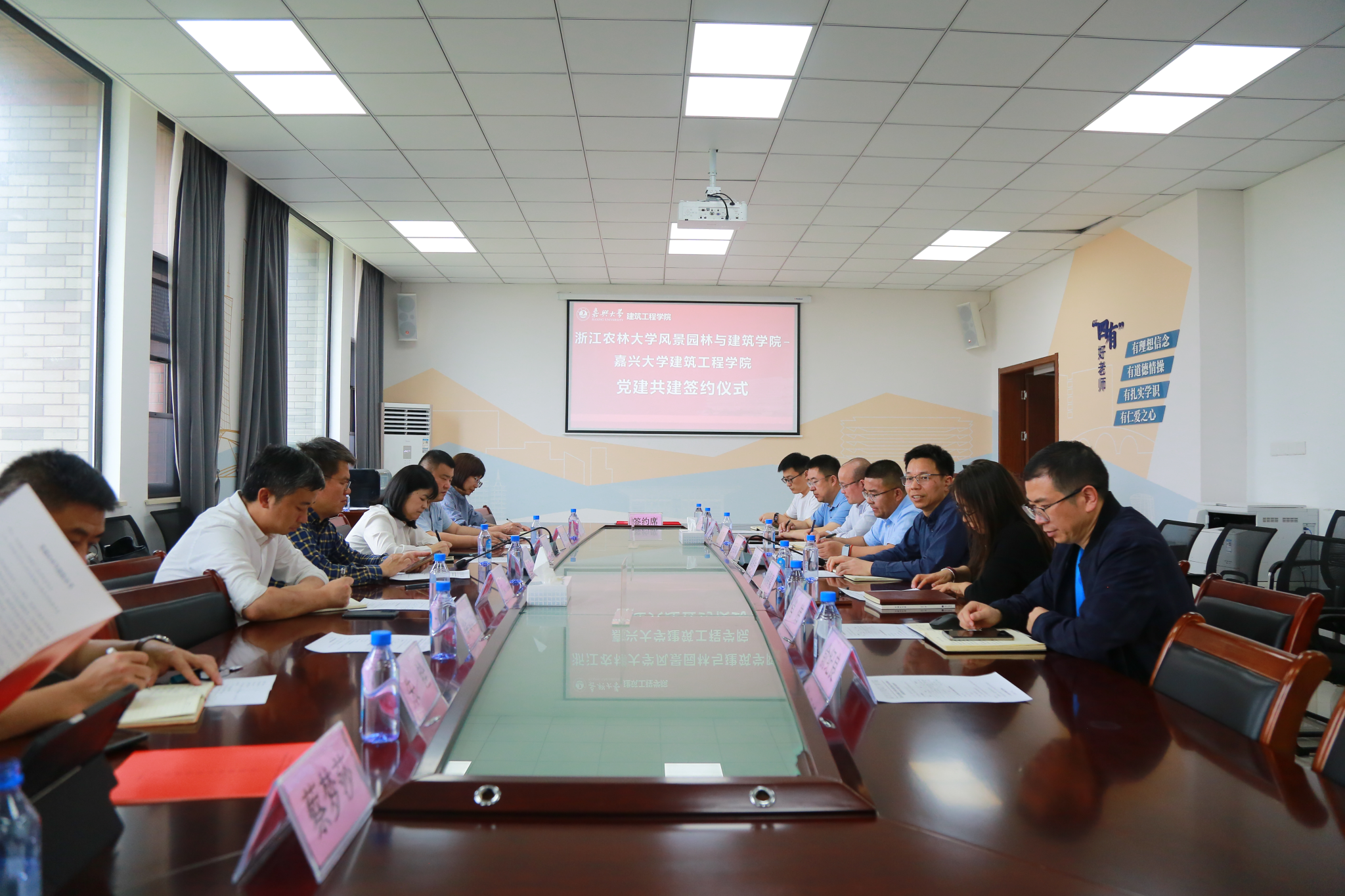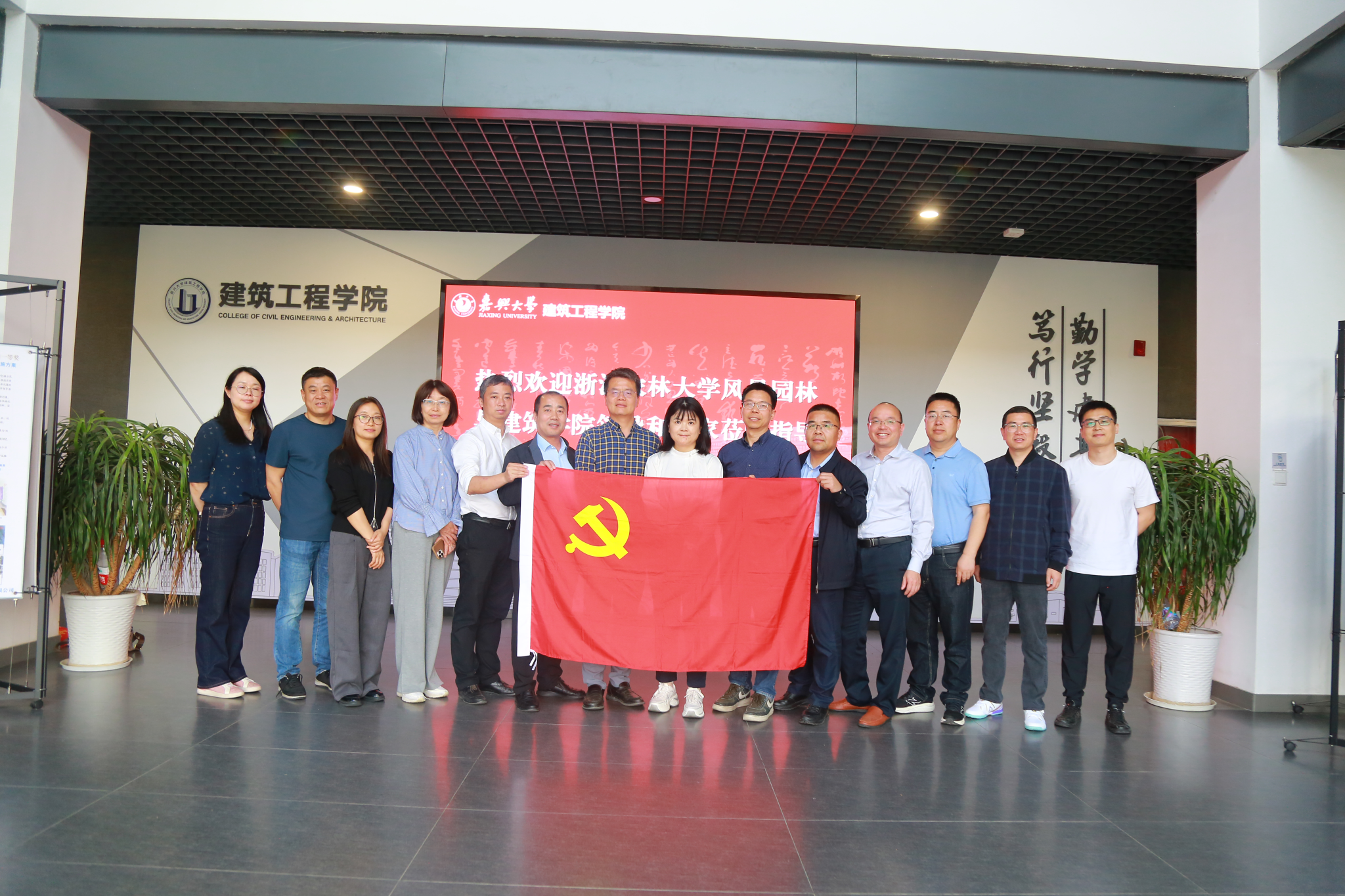 党委书记童勇军介绍了学院基本情况,系统阐述了学院“土木+”交叉学科体系构建成果,重点介绍了智能建造实验室、中德合作办学项目等特色平台建设成效。浙江农林大学风景园林与建筑学院院长赵宏波详细介绍了学院在风景园林与建筑设计领域的深厚底蕴与前沿探索,展现了学院在推动绿色建筑、生态园林景观设计等方面的卓越贡献。随后,党委书记徐丽华则从党建工作的角度出发,分享了学院在党员教育、组织建设、服务社会等方面的成功经验和创新做法。