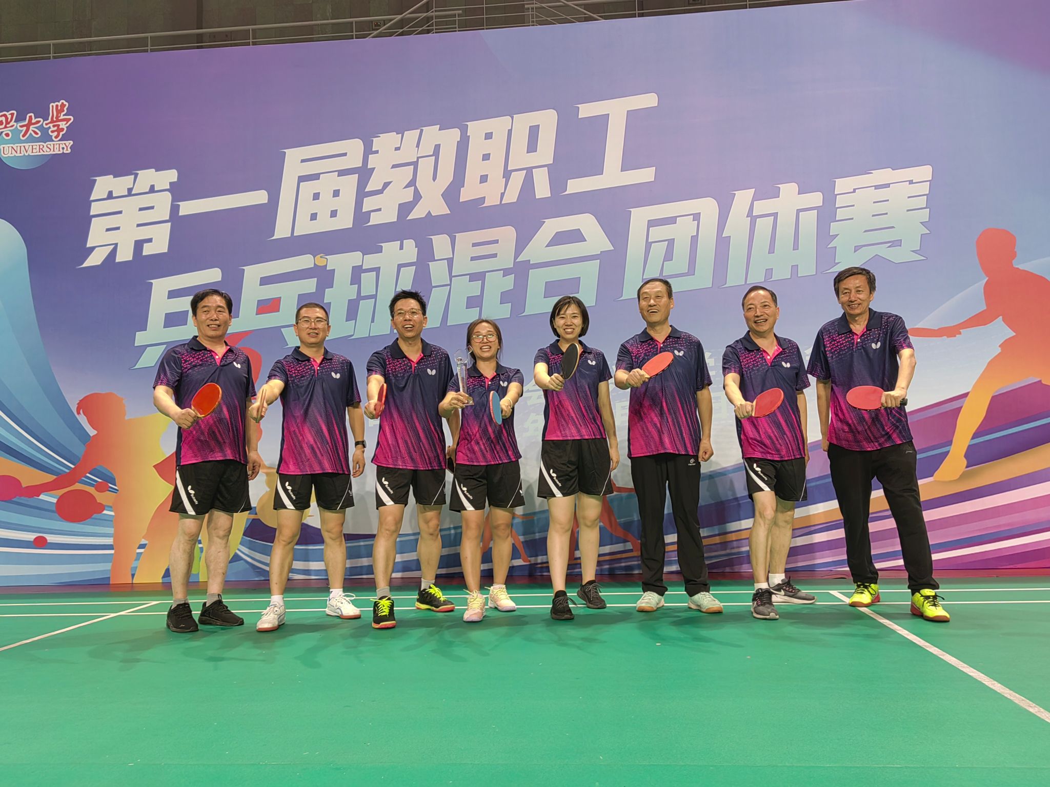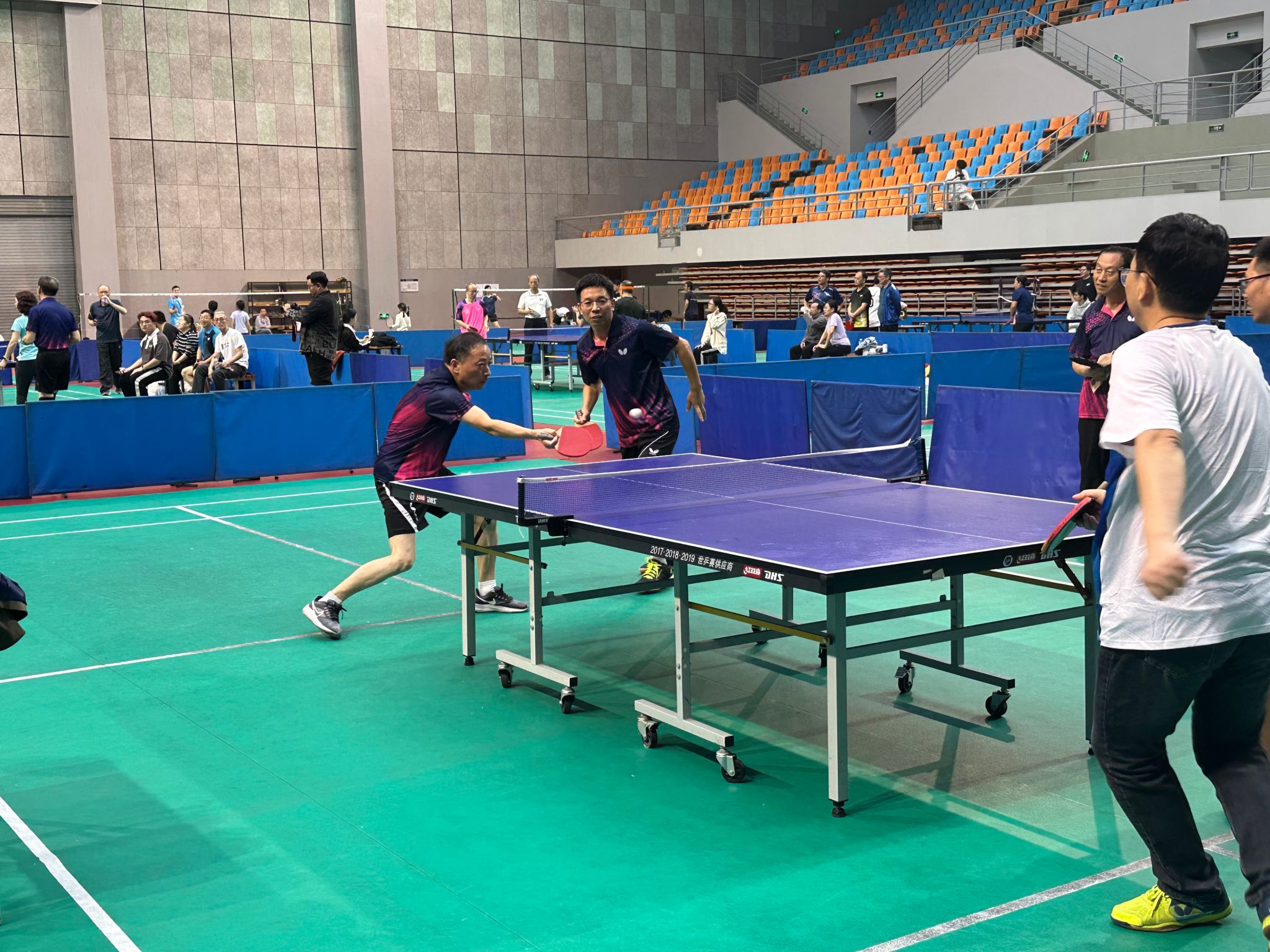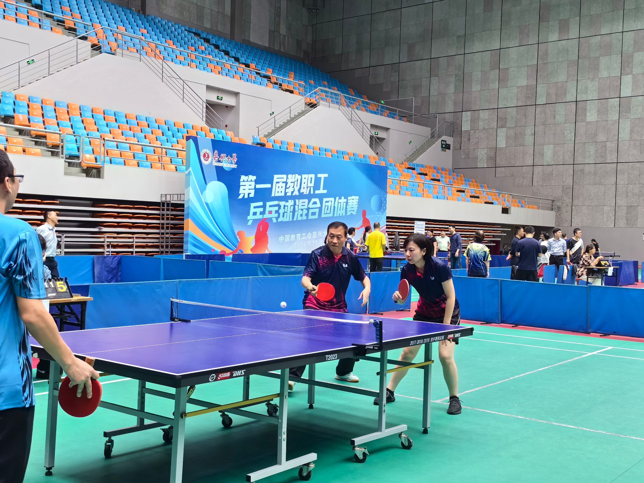 首届教职工乒乓球混合团体赛在体育馆圆满落幕。黄色网