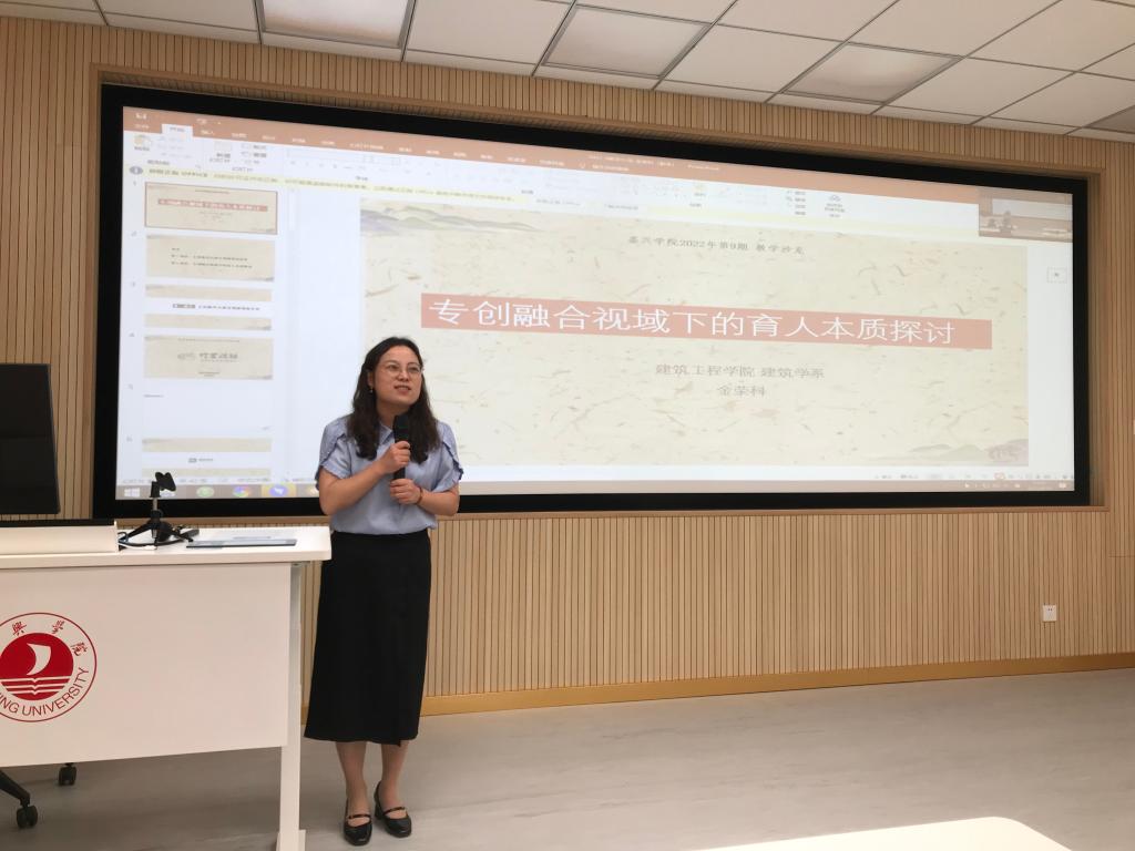 黄殿武副院长主持,胡亚楠老师为主讲嘉宾、创业学院陈致远副院长和建筑学系金荣科副主任为分享嘉宾,来自10多个学院共100多名教师参加该活动。