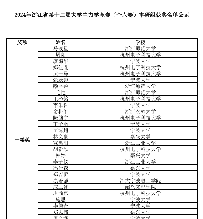 2024年11月16日至17日,由浙江省大学生科技竞赛委员会主办,宁波大学和浙江省力学学会承办的浙江省第十二届大学生力学竞赛在嘉兴南洋职业技术学院成功举办。