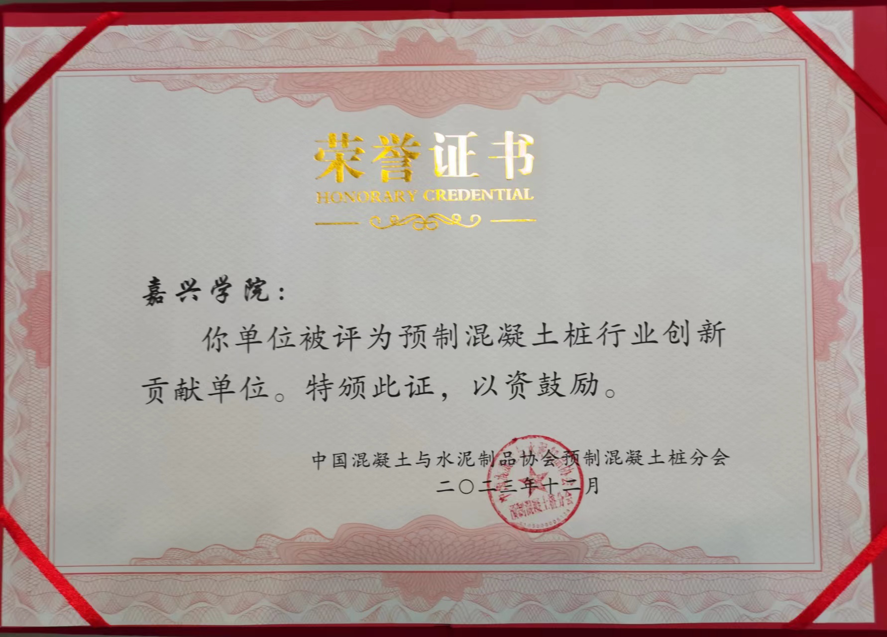 会议对为我国预制混凝土桩行业发展过程中做出突出贡献的单位做出表彰,嘉兴学院被评为“预制混凝土桩行业创新贡献单位”。嘉兴学院黄色网