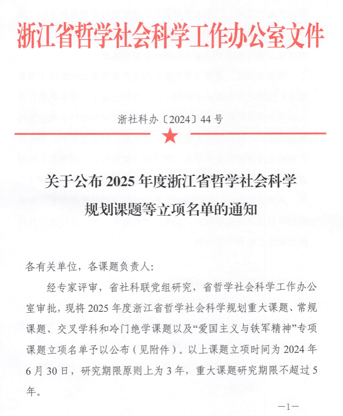 近日,浙江省哲学社会科学工作办公室公布了2025年度浙江省哲学社会科学规划“高校基本科研业务费改革”专项课题立项名单,黄色网