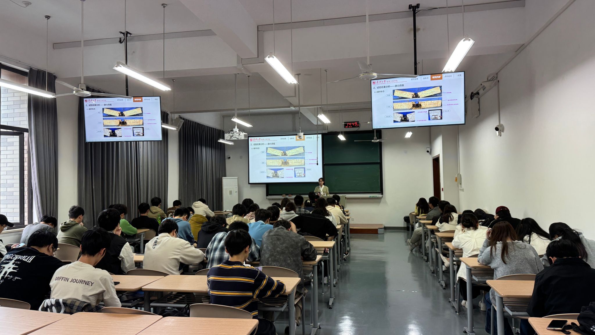 马金凤博士题为《不同应力状态下型钢再生混凝土粘结滑移性能研究》的学术报告,围绕“双碳”背景下,绿色低耗能材料结构的创新与发展展开,从试件设计、试验加载、试验结果和理论分析等方面介绍了对型钢再生混凝土界面的黏结滑移性能的研究,该研究内容及研究成果对于完善型钢再生混凝土结构的理论计算和设计方法具有重要意义,对于促进型钢再生混凝土结构的推广和应用亦具有重要价值,报告结束前,师生还与马博士就一些学术问题作了交流。