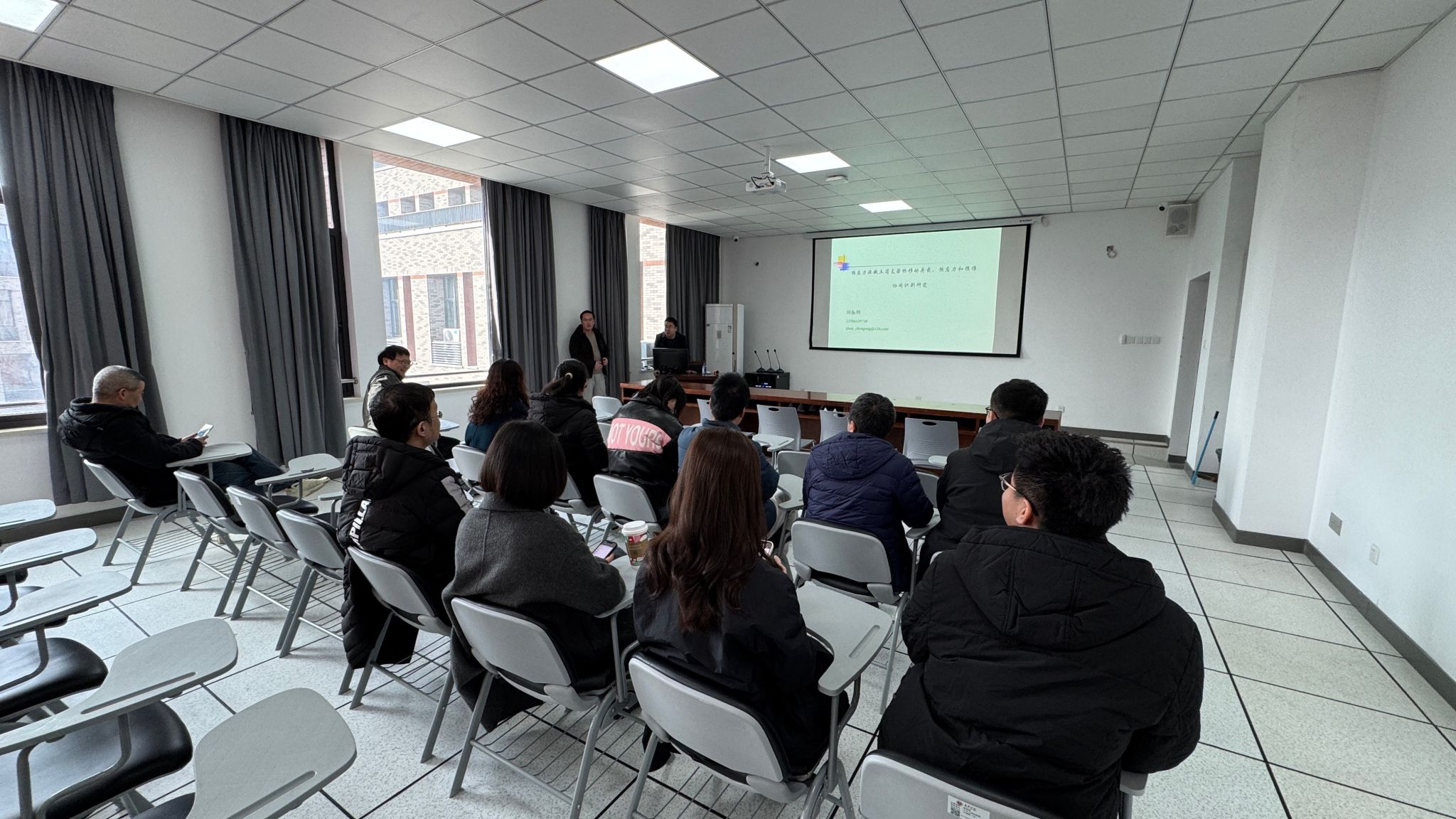 12月19日下午,周振纲博士在兴德北楼402做题为《预应力混凝土简支梁桥移动荷载、预应力和损伤协同识别》的学术报告,土木工程系教师近20位教师参加本次活动。