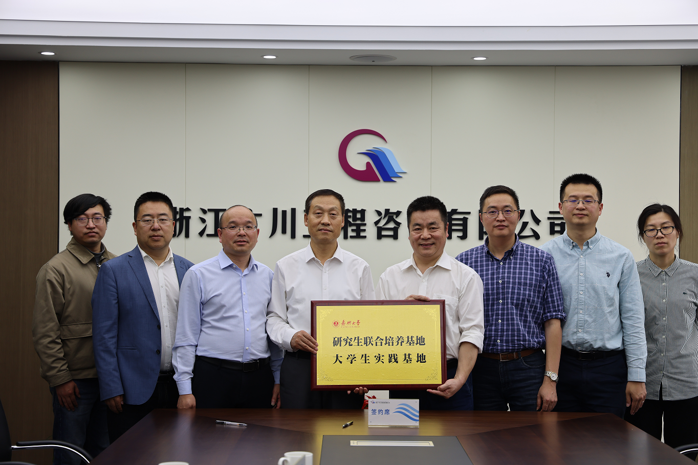 院长王恩茂、副院长熊厚仁等一行四人前往浙江广川工程咨询有限公司,开展产学研交流活动,并举行了校企合作与研究生联合培养基地的签约揭牌仪式。浙江广川工程咨询有限公司(以下简称“广川咨询”)董事长韩海骞、总工程师胡晓明、技术部主任徐旦等出席了此次签约揭牌仪式。