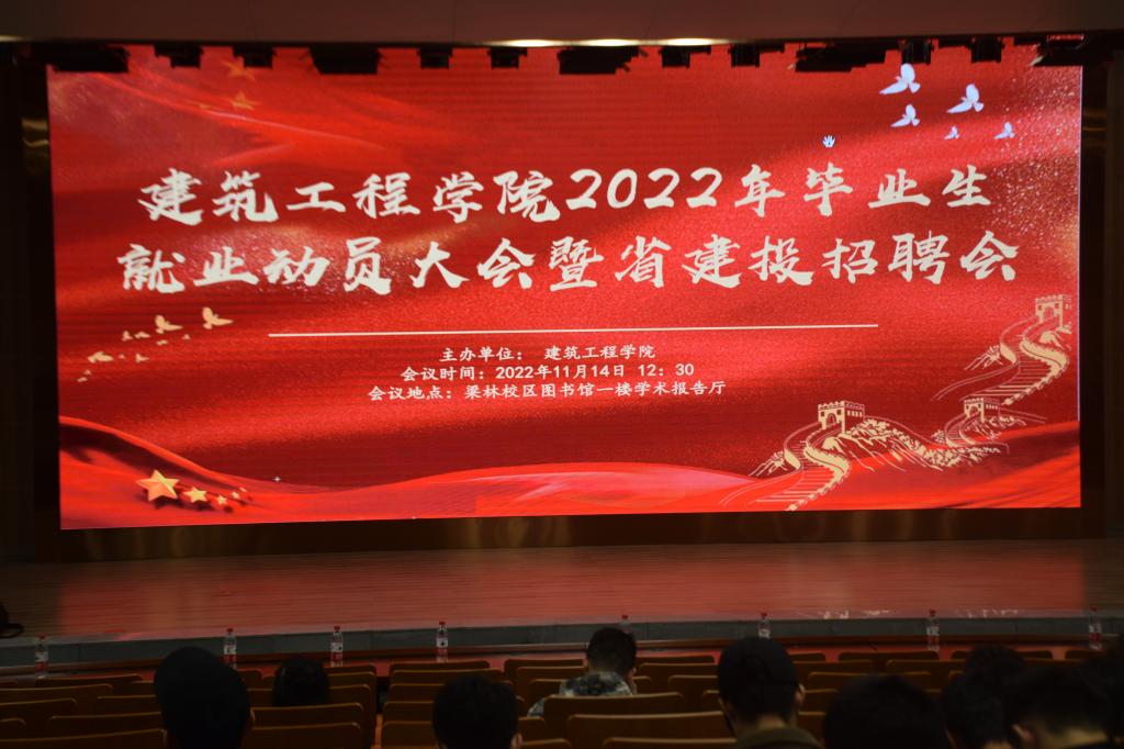 于梁林校区图书馆一楼学术报告厅召开毕业生就业动员大会。学院党委副书记杨智慧、南湖学院大学生职业训练协会指导教师李嘉、浙江省建设投资集团股份有限公司携各分公司负责人以及黄色网