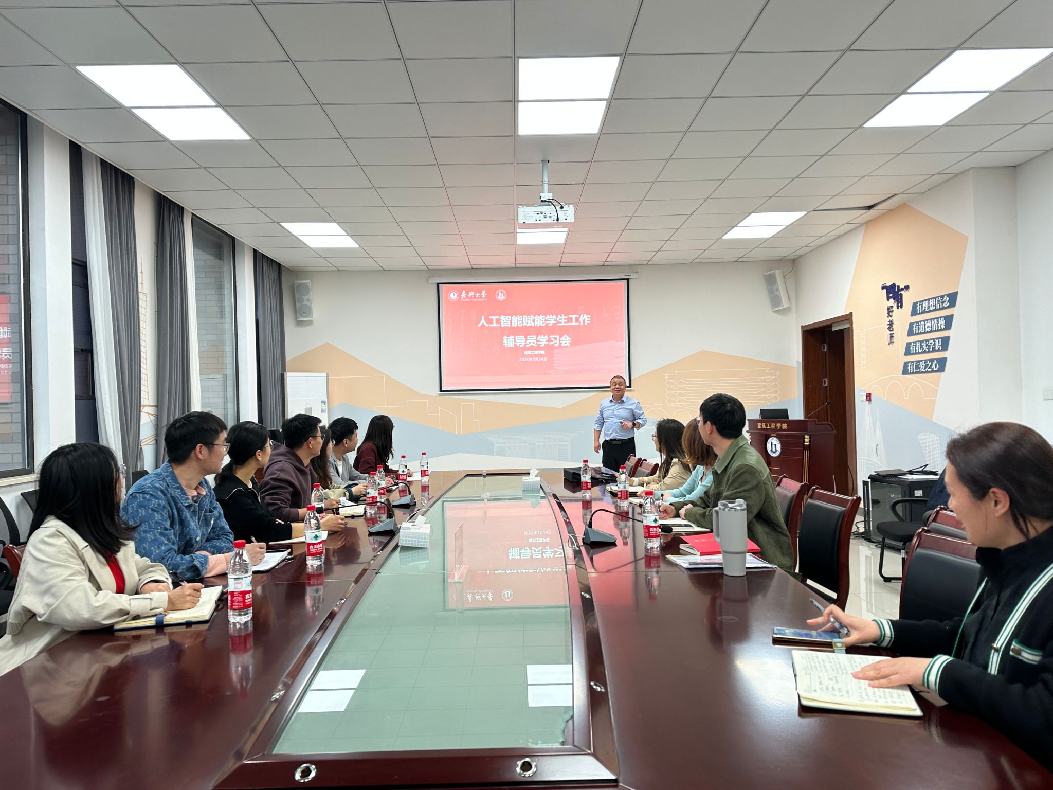 于3月24日举办“AI赋能学生工作专题学习会”,旨在探索学生管理与思政教育的智能化路径,为培养新时代创新人才提供技术支撑。专题学习会由信息科学与工程学院邓琨副院长主讲,学院全体辅导员及其他兄弟学院辅导员参加了学习会。