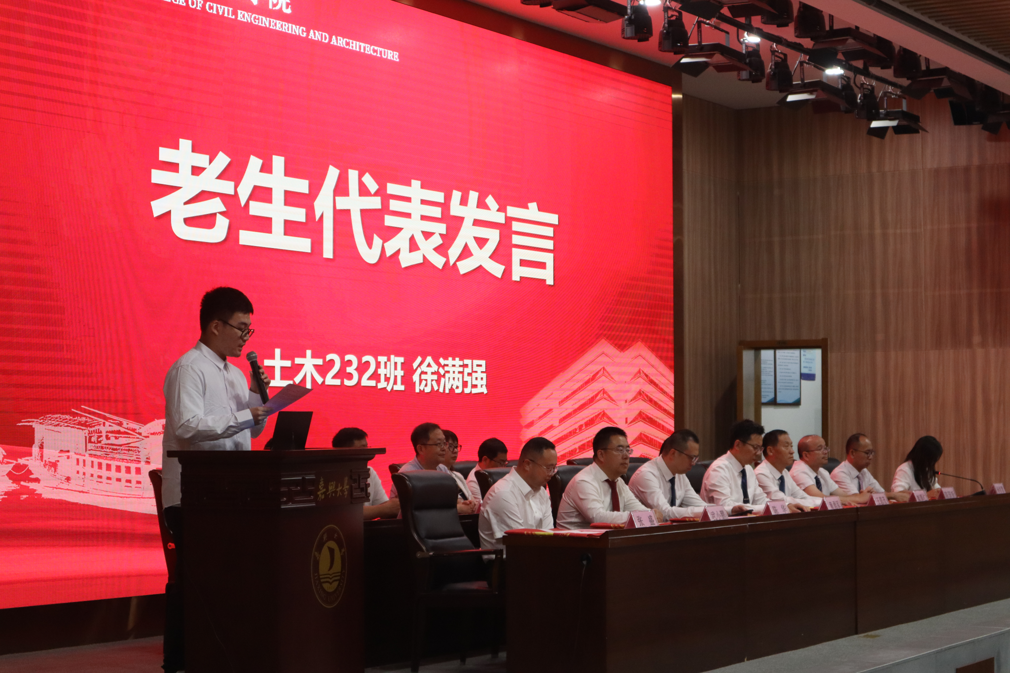 典礼的最后,院长王恩茂向新生们提出了三点殷切希望:一是勤学建基,成为“好房子建设”的卓越践行者,以扎实的专业知识筑就安全、绿色、智慧的居住空间;二是勇于探索,成为“智能建造”的先锋引领者,主动拥抱新技术、新材料、新工艺;三是笃行坚毅,担当“城市更新”的忠诚守卫者,积极投身于老旧小区改造、历史街区保护等工程。他勉励新生们怀揣着“知识报国、专业报‘嘉’”的伟大梦想,成长为有温度、有高度、有担当的“时代建造者”。