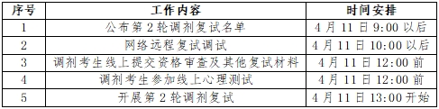 硕士研究生复试将采取网络远程复试方式进行,调剂复试安排初定如下,如有变更另行通知: